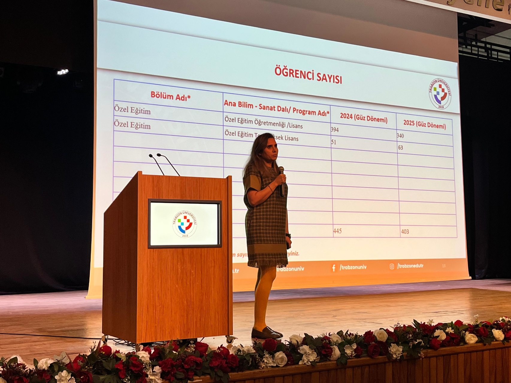 Ardından Bölüm Başkanımız Dr. Öğr. Üyesi Pınar Yaşar Hayal tarafından bölümümüze ilişkin kapsamlı bir sunum gerçekleştirildi. Sunumda; bölümün yönetim yapısı, akademik ve idari personel durumu, eğitim-öğretim faaliyetleri, öğrenci profili, fiziki altyapı olanakları, araştırma-geliştirme çalışmaları ve uluslararasılaşma faaliyetlerine ilişkin güncel veriler katılımcılarla paylaşıldı.