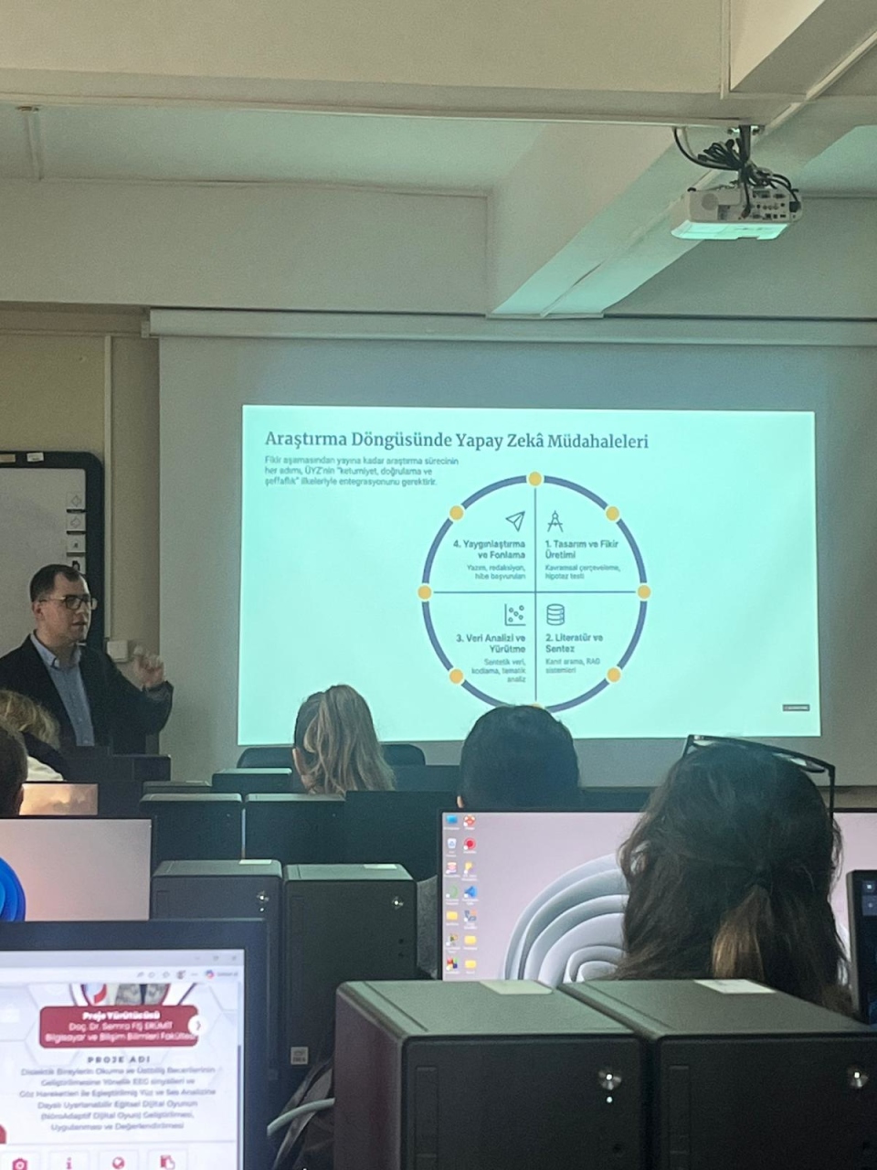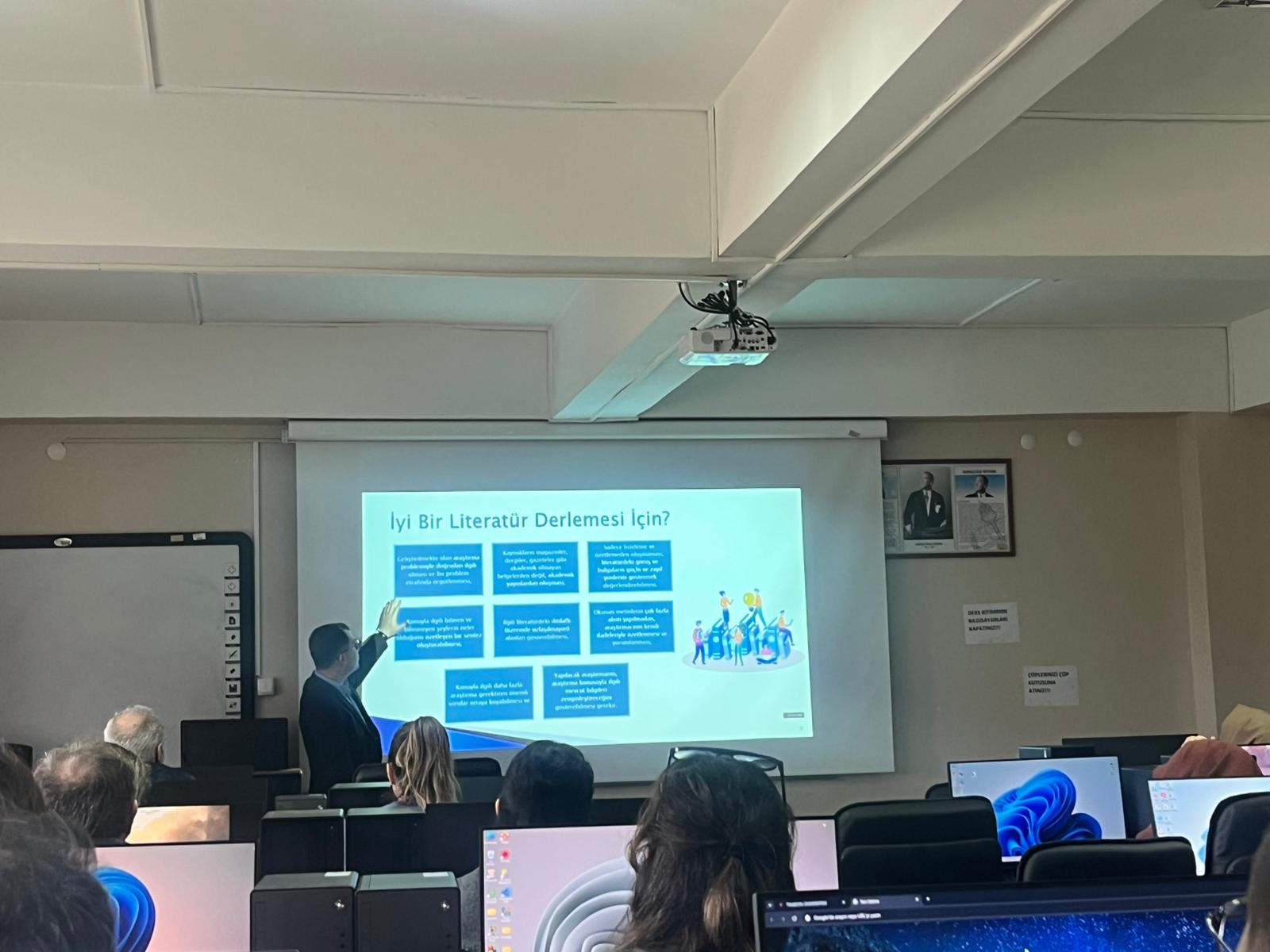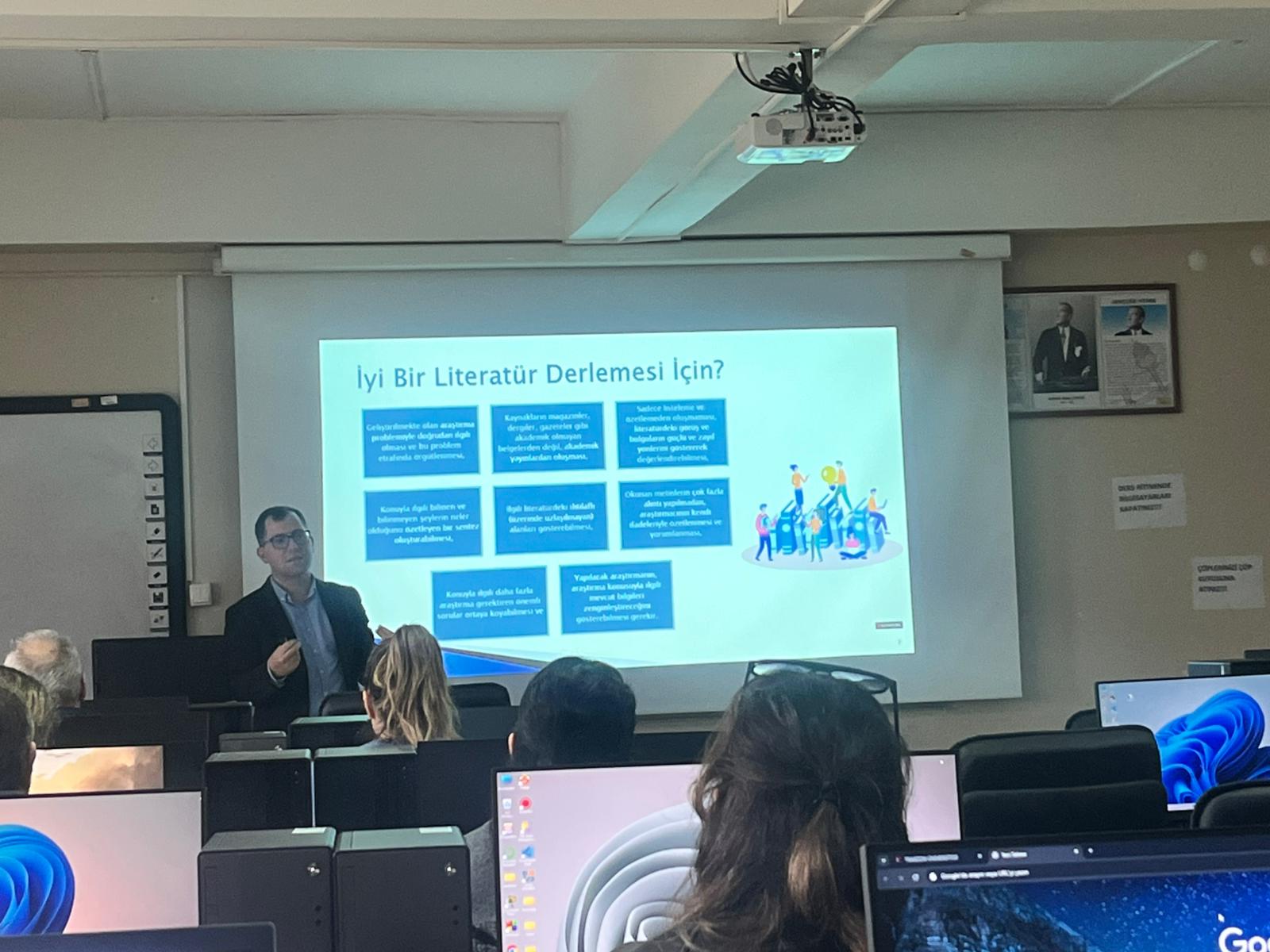 Eğitmen Doç. Dr. Mehmet Kokoç tarafından yürütülen etkinlikte; literatür tarama, veri analizi, akademik yazım ve yayın süreçlerinde yapay zekâ destekli araçların etkin ve sorumlu kullanımı örneklerle açıklanmıştır. Katılımcılar, uygulamaya dönük bilgiler edinme fırsatı bulmuş ve alandaki güncel gelişmeler hakkında farkındalık kazanmıştır.